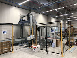 Die herausragenden Punkte sind die kleine Bauform dadurch geringer Platzbedarf und mit einer Batterieladung können bis zu 320 Paletten gewickelt werden.